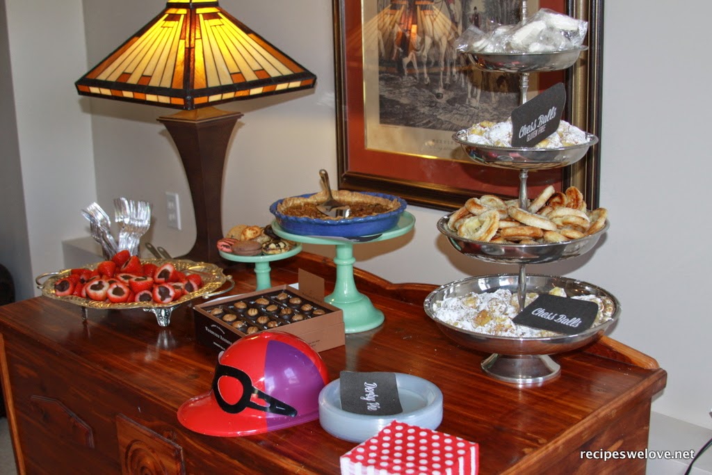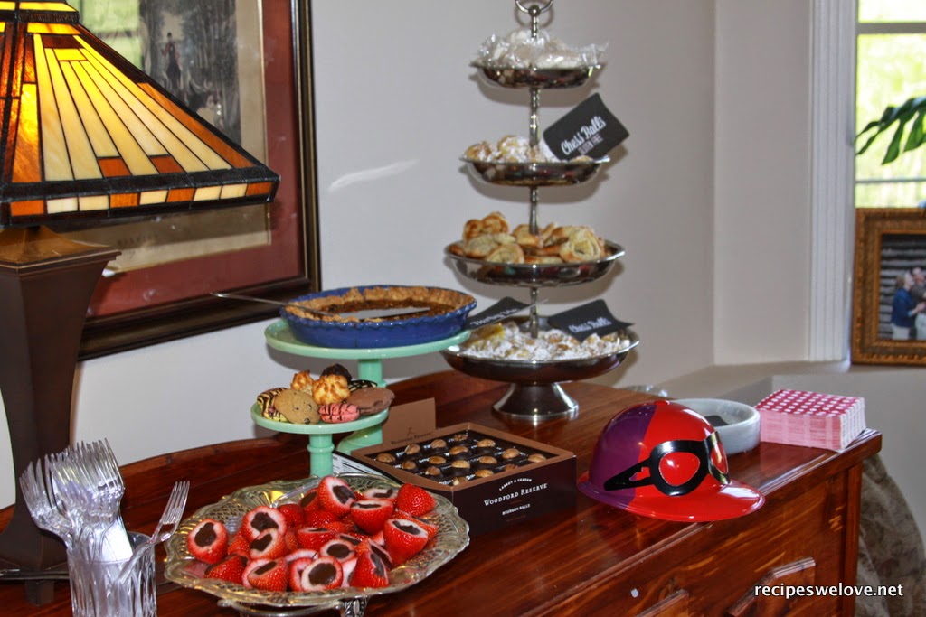 So we add some equestrian items to get the mood going. I also collect several derby related items my derby glasses being one of my favorites. Over the years I have collected about 75 glasses so they are a fun addition to party and since the glasses are all different that means that guests can keep up with their own easier.